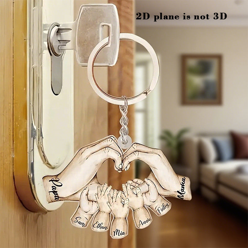 Heart shaped acrylic keychain,Custom Name Hand Fist Keychain——Hold the 'love of family' in the palm of your hand