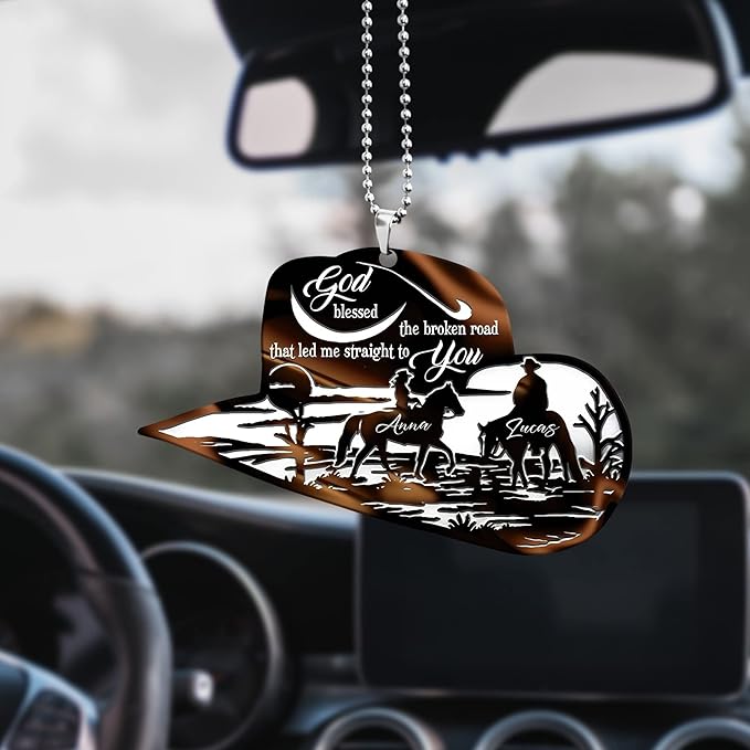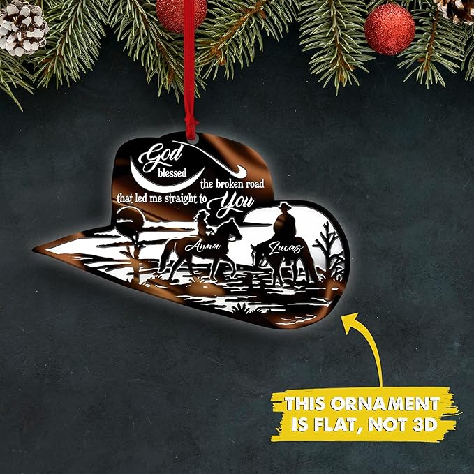 Personalized Cowboy Couple Ornament, Cowboy Couple Scene Godd Blessed Custom Christmas Ornament, Western Horseshoe Couple Ornament, Gift for Couple Cowboy, Horse Lovers Keepsake